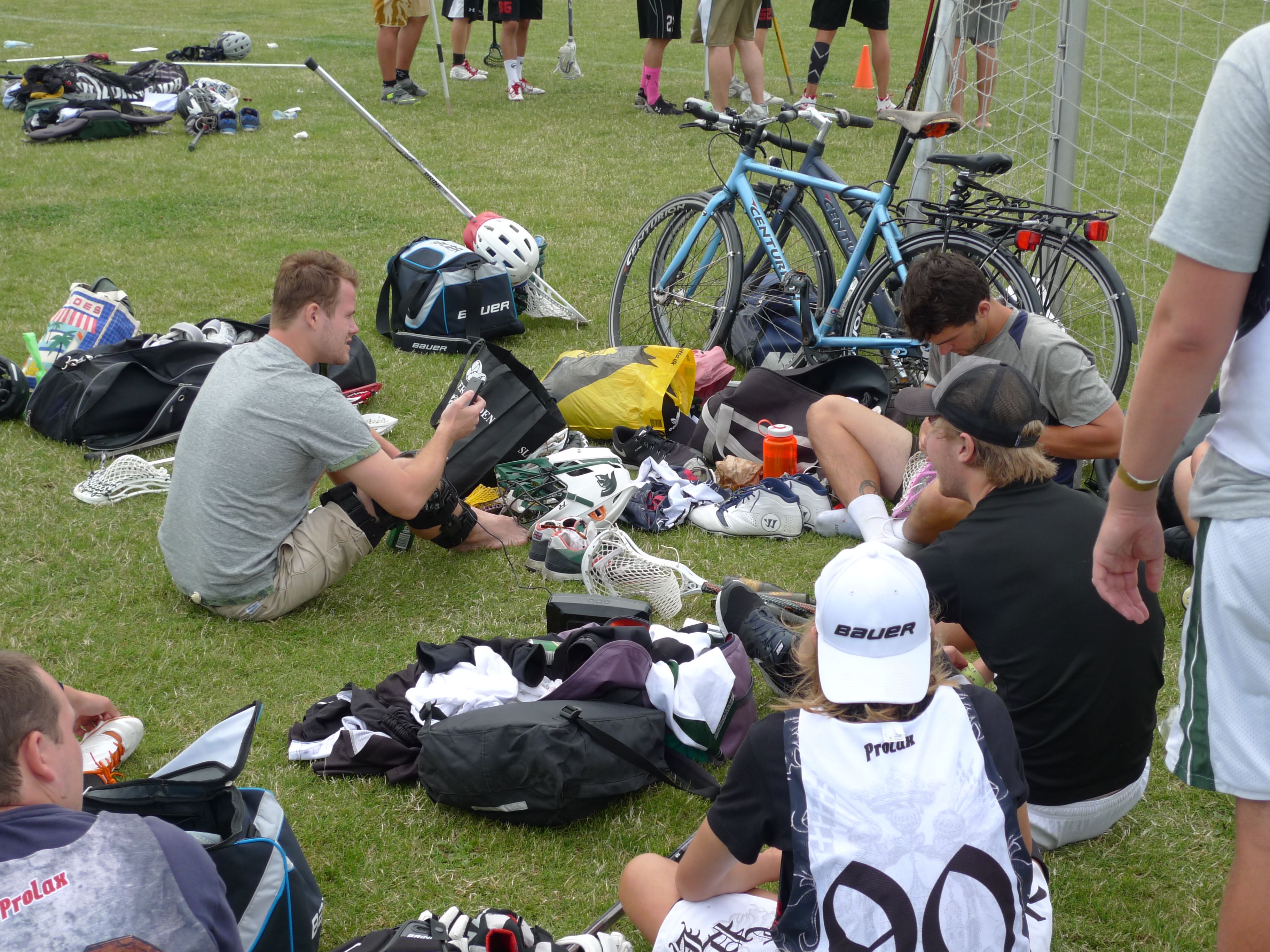 Despite being ‘the fastest game on two feet’, loads of action and fun (left), the Canadian national sport is no big deal in Denmark yet. Lacrosse only has three teams in Denmark so far and Nick Ravenhall (centre left on the left) from New Zealand, who lives in Norway, is the man to change that.
